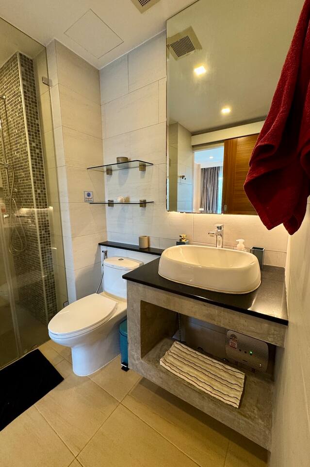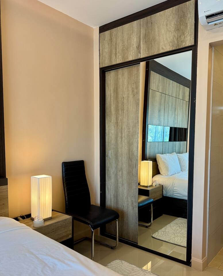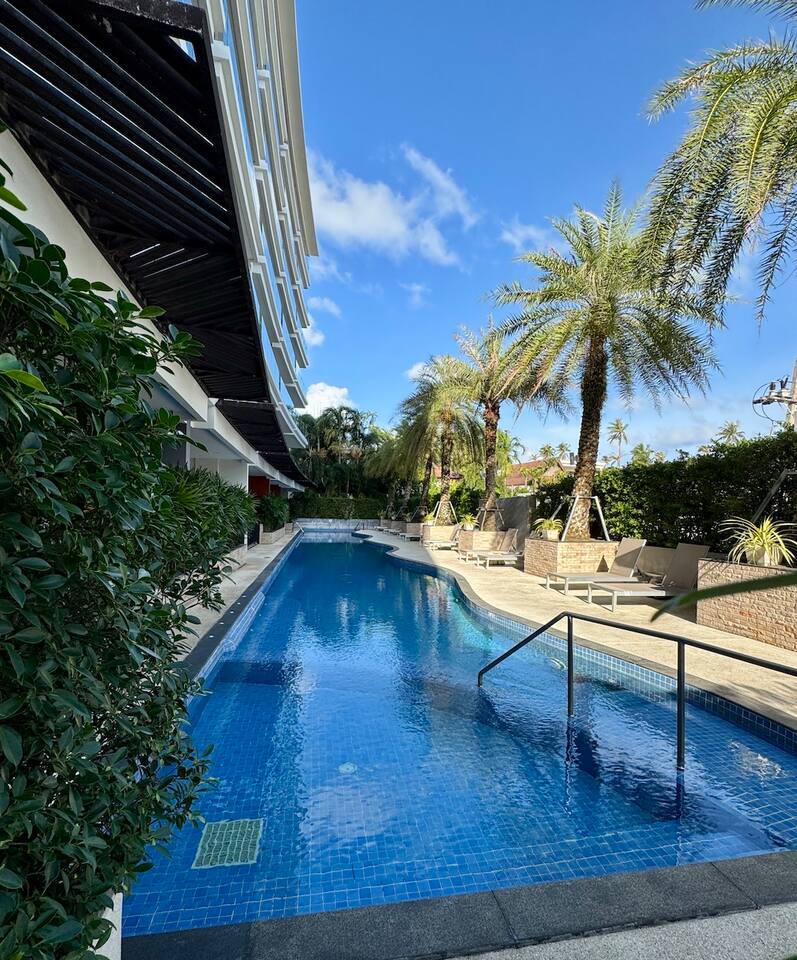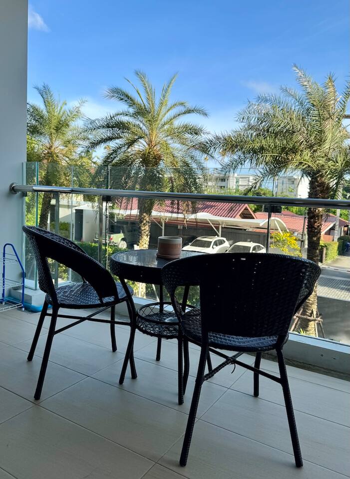 The entire apartment is at your disposal, offering full privacy and comfort. Enjoy your own private balcony and access to the facilities of a secure boutique complex in Rawai. Guests have access to two swimming pools: the first one is a large landscaped pool on the ground floor with a kids’ area, outdoor jacuzzi, sun terrace and lush palm trees all around. The second is a rooftop infinity pool with panoramic sea views and loungers, perfect for sunset relaxation. Parking is convenient and spacious: a large guest parking lot is available outside the gates, while residents have access to the internal parking area via entry cards.