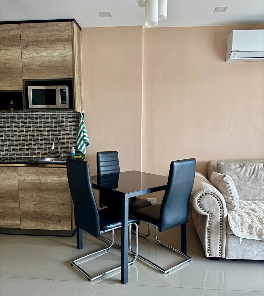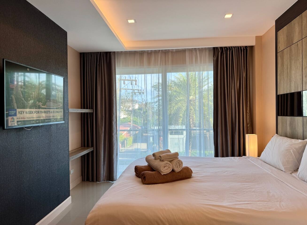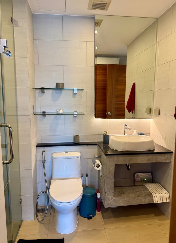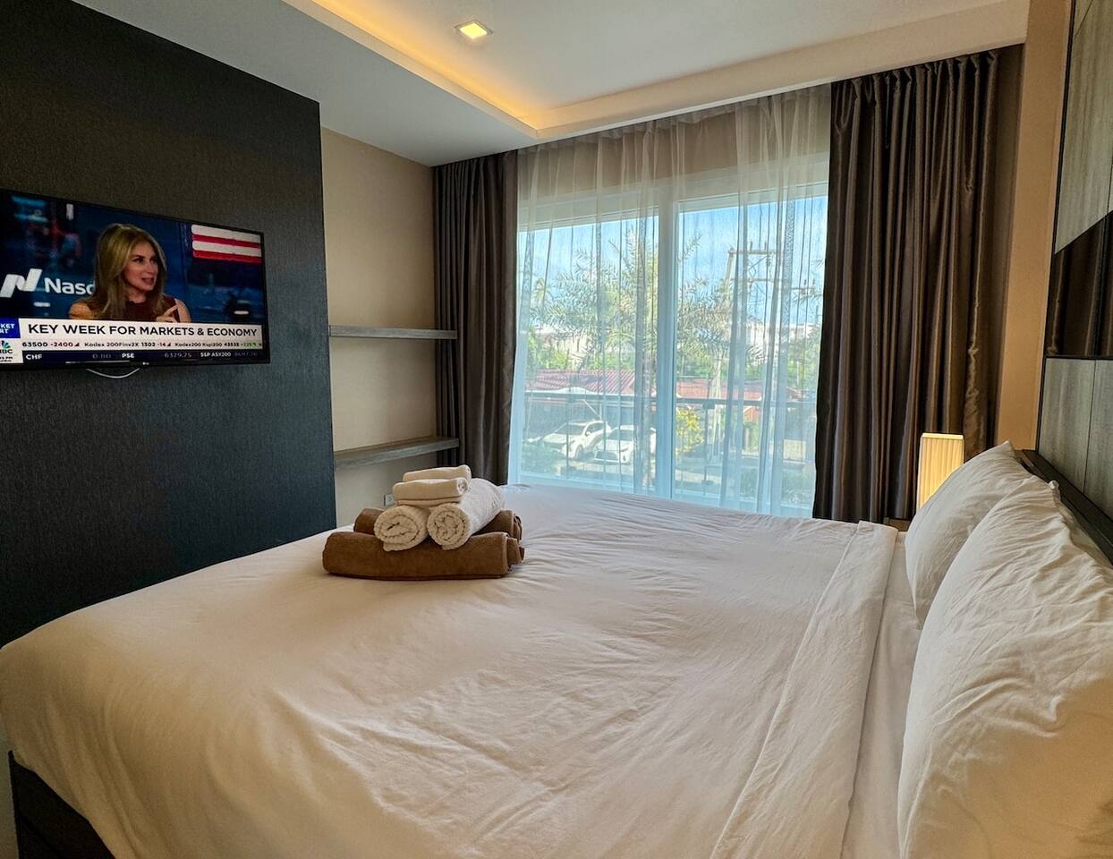The entire apartment is at your disposal, offering full privacy and comfort. Enjoy your own private balcony and access to the facilities of a secure boutique complex in Rawai. Guests have access to two swimming pools: the first one is a large landscaped pool on the ground floor with a kids’ area, outdoor jacuzzi, sun terrace and lush palm trees all around. The second is a rooftop infinity pool with panoramic sea views and loungers, perfect for sunset relaxation. Parking is convenient and spacious: a large guest parking lot is available outside the gates, while residents have access to the internal parking area via entry cards.