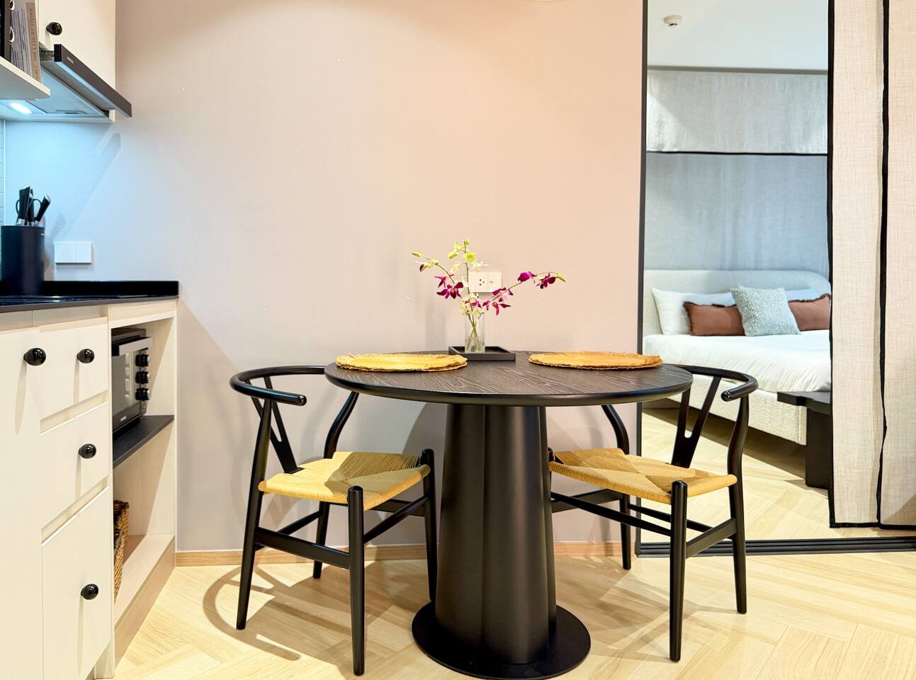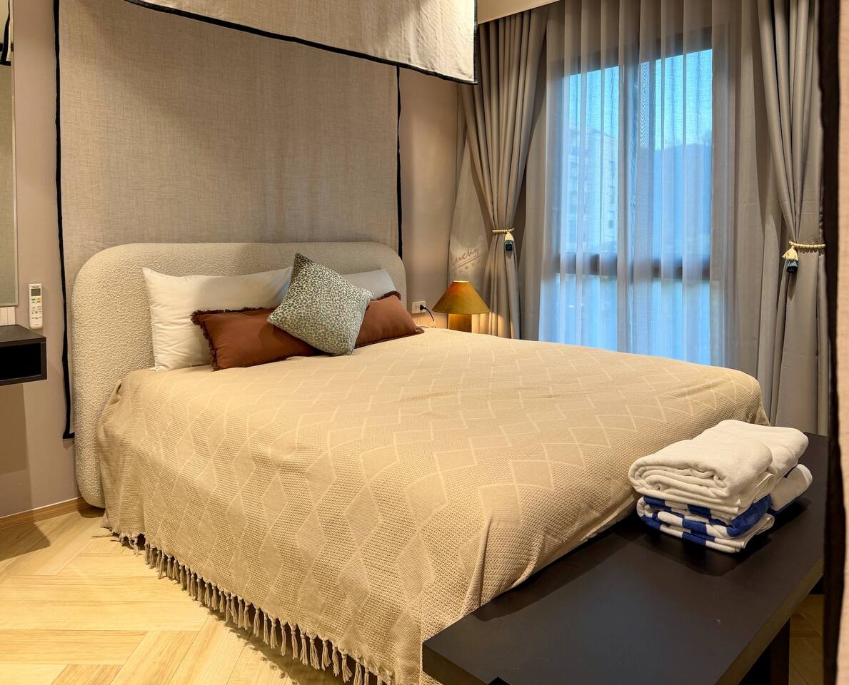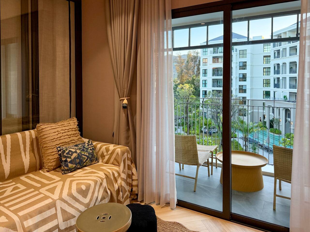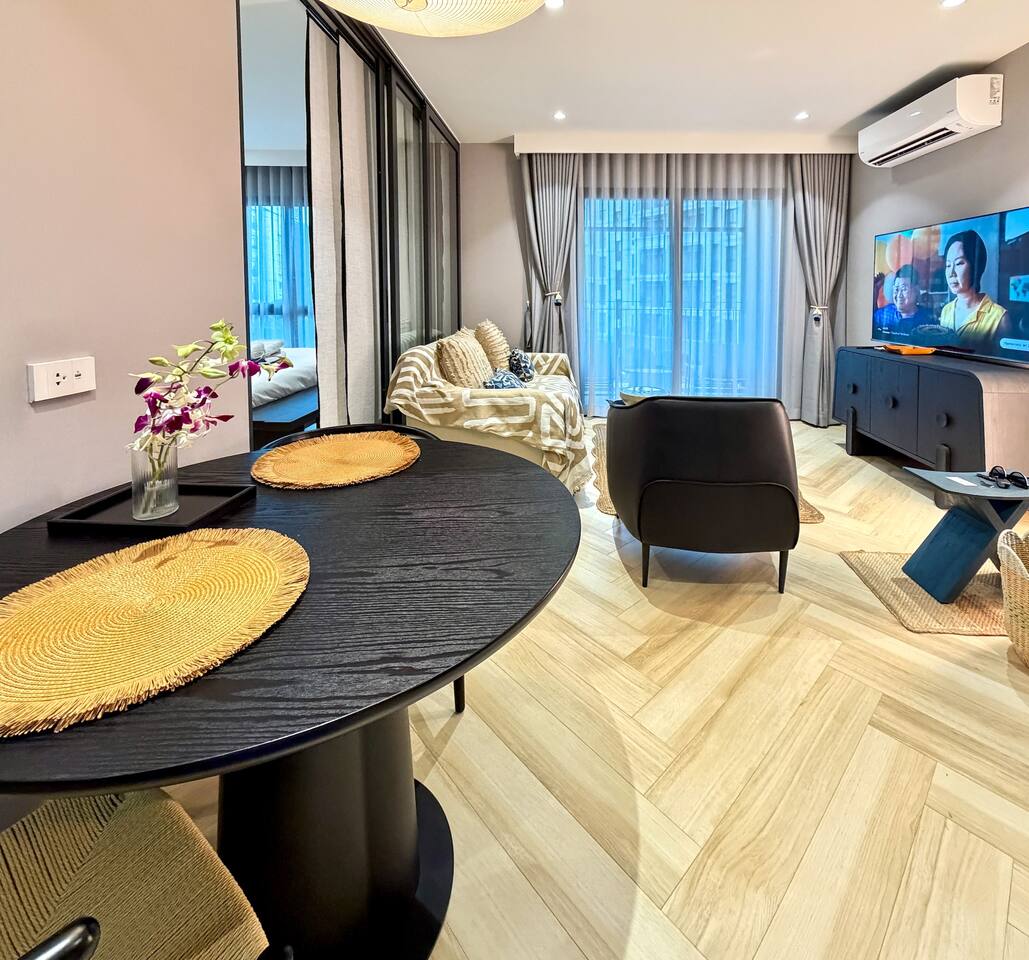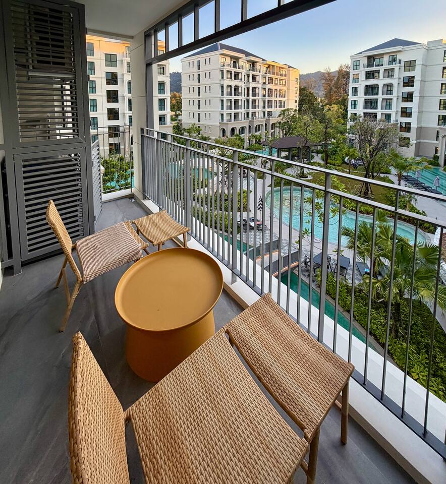 Современные апартаменты с живописным видом на бассейн расположены на 4 этаже корпуса I The Title Legendary, всего в 700 метрах от пляжа Бангтао. Высокий этаж, панорамные виды и стильная обстановка создают ощущение простора и лёгкости с первых минут. Название Laya связано с гармонией и внутренним балансом. Это настроение чувствуется в интерьере: светлые тона, мягкий дневной свет, продуманная планировка и спокойная атмосфера, идеально подходящая для отдыха или длительного проживания на Пхукете.