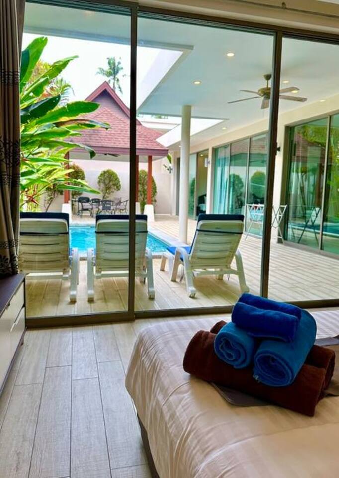 Спортзал в комплексе Стиральная машинка Частный бассейн Барбекю Уникальность этой виллы заключается в ее расположении. Популярный и известный пирс Раваи, seafood market - рынок с морепродуктами расположены в 15 минутах пешком от виллы. Всего 5-7 минут и вы дойдете до круглосуточного магазина 7/11 и до СПА центра, где массажный салон, бассейн, сауна, маникюрный салон.