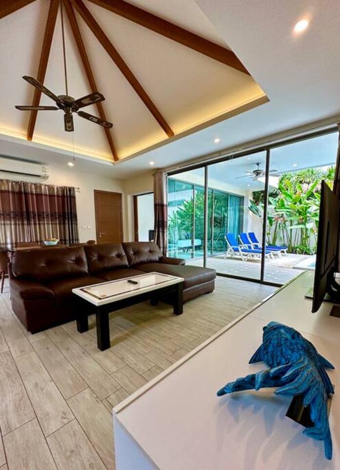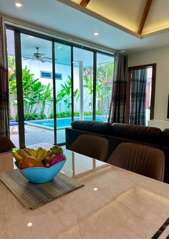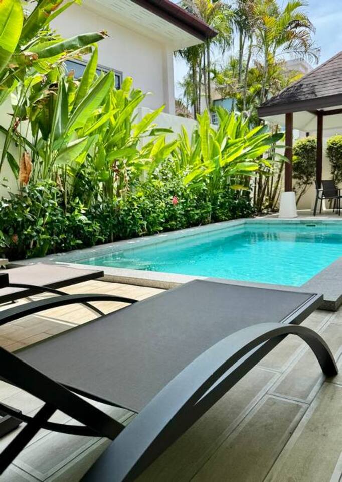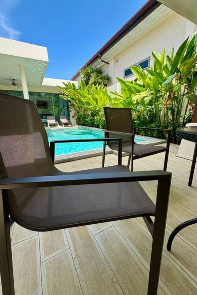 • Modern design with light-filled spaces and direct pool access from every room. • Private swimming pool, BBQ area, and gazebo with dining zone. • Brand-new outdoor furniture and high-speed Wi-Fi. • Gym in the complex. • Secure parking and automatic gates. • 24/7 security in the gated community. • Prime location near Rawai Pier, seafood market, shops, and spa centers. • Electricity is charged separately based on actual meter readings at check-out. • Smoking is not allowed inside the villa. • Pets are not permitted. • Quiet hours after 21:00. • Please respect the tropical garden and outdoor furniture.