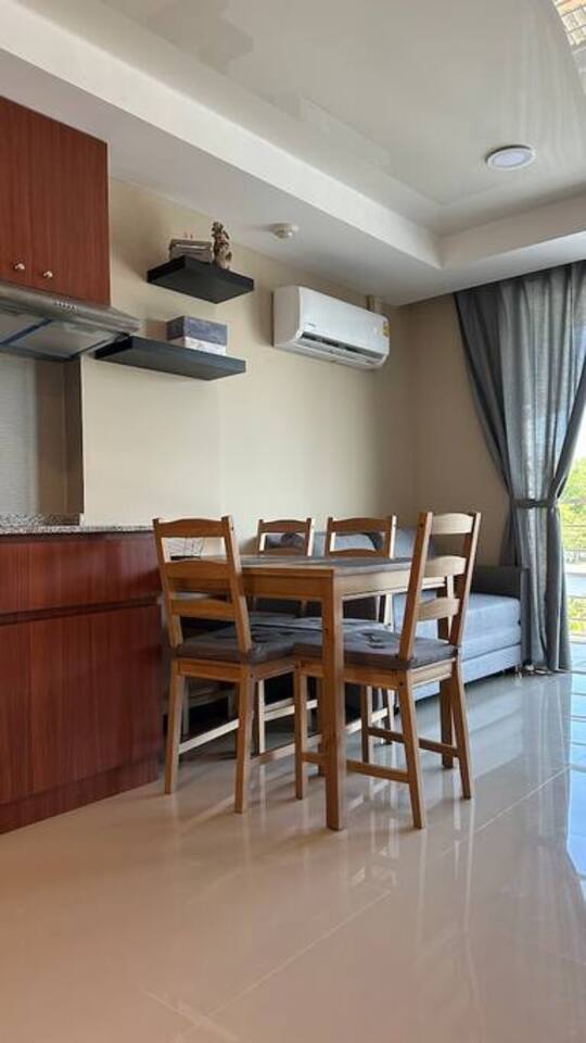 • Spacious layout • Bright and cozy atmosphere • Fully equipped kitchen and large balcony • 2 Smart TVs — in the bedroom and living room • Walking distance to Ya Nui Beach, Rawai promenade, and shops • Great location for a peaceful stay in South Phuket • Located on the 3rd floor • View of the mountains and greenery • Elevator and free parking available • Private Wi-Fi • Sofa bed in the living room • No reception desk