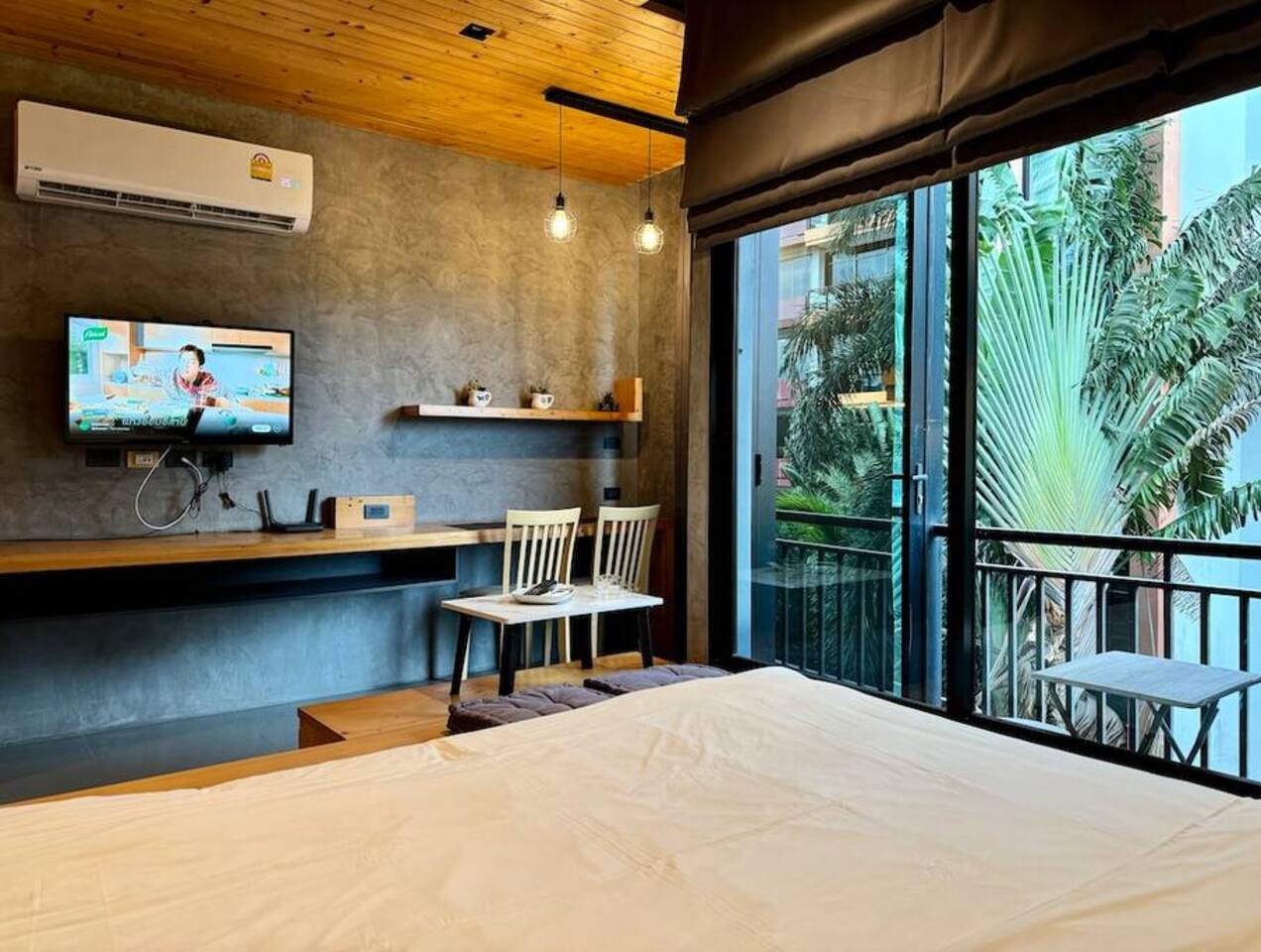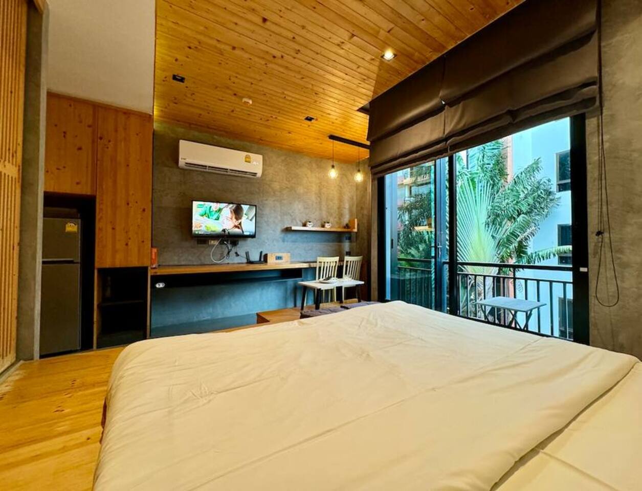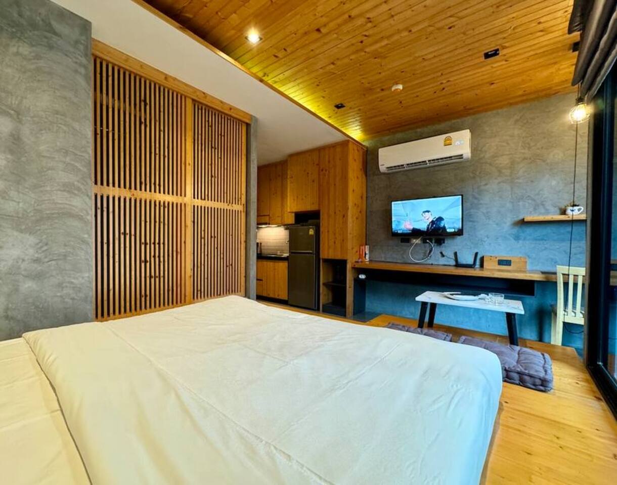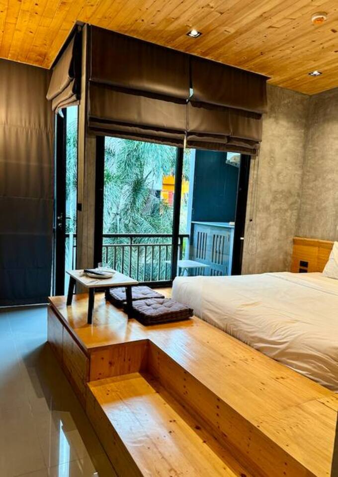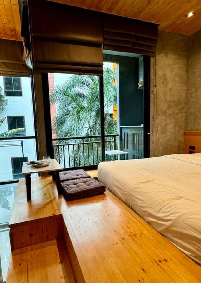 Stylish Studio is located on the 3rd floor of the ReLife Windy, within walking distance of the scenic lake and Nai Harn Beach. In Thai, “Taya” is associated with softness, harmony, and stability. The interior, designed with natural materials, and the picturesque view of palm trees and mountains fully reflect this meaning. The studio is bright and functional, suitable for 1–2 guests. For your comfort, it features a Smart TV, a washing machine, dedicated internet and blackout curtains.
