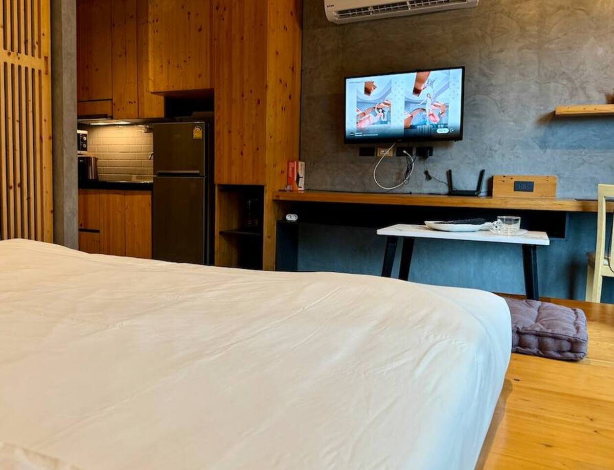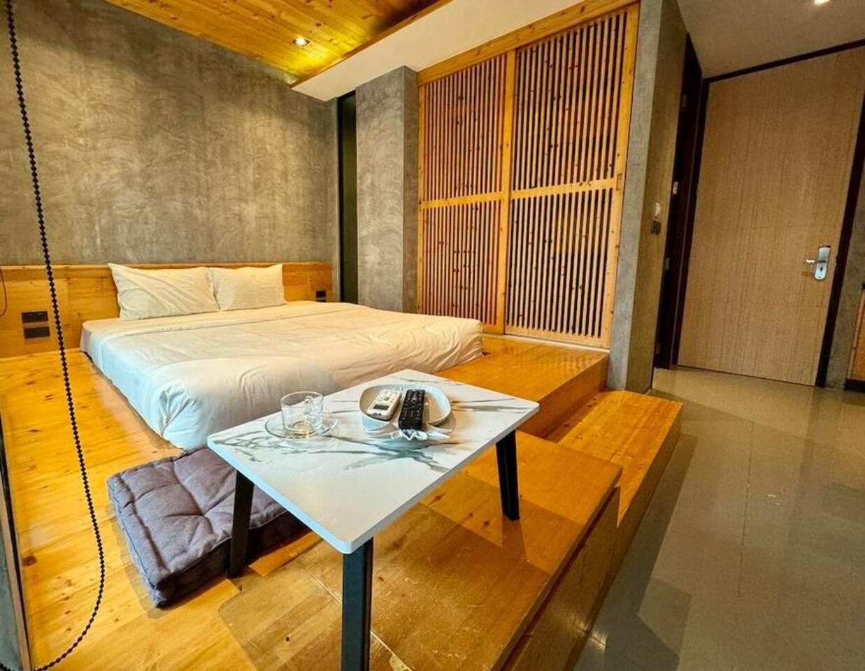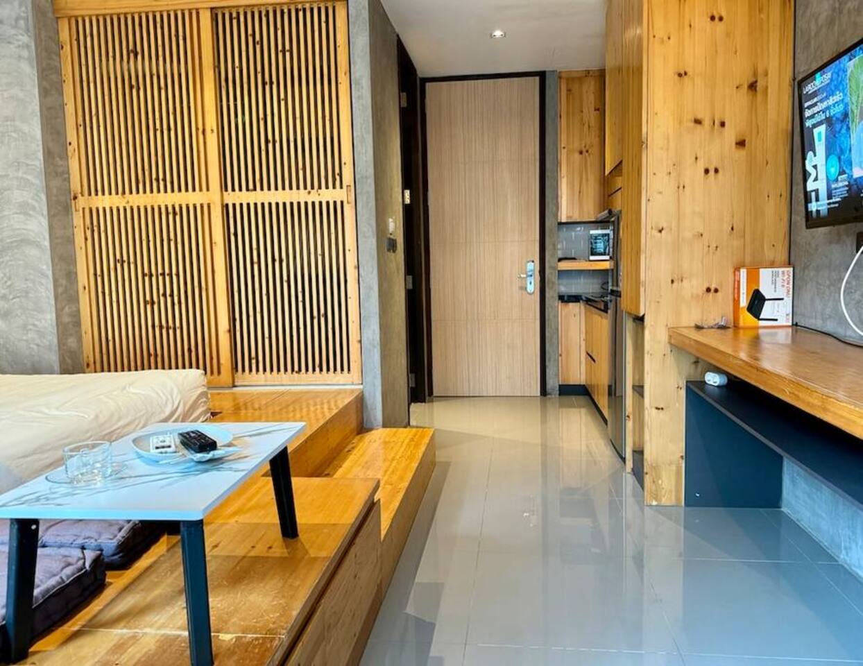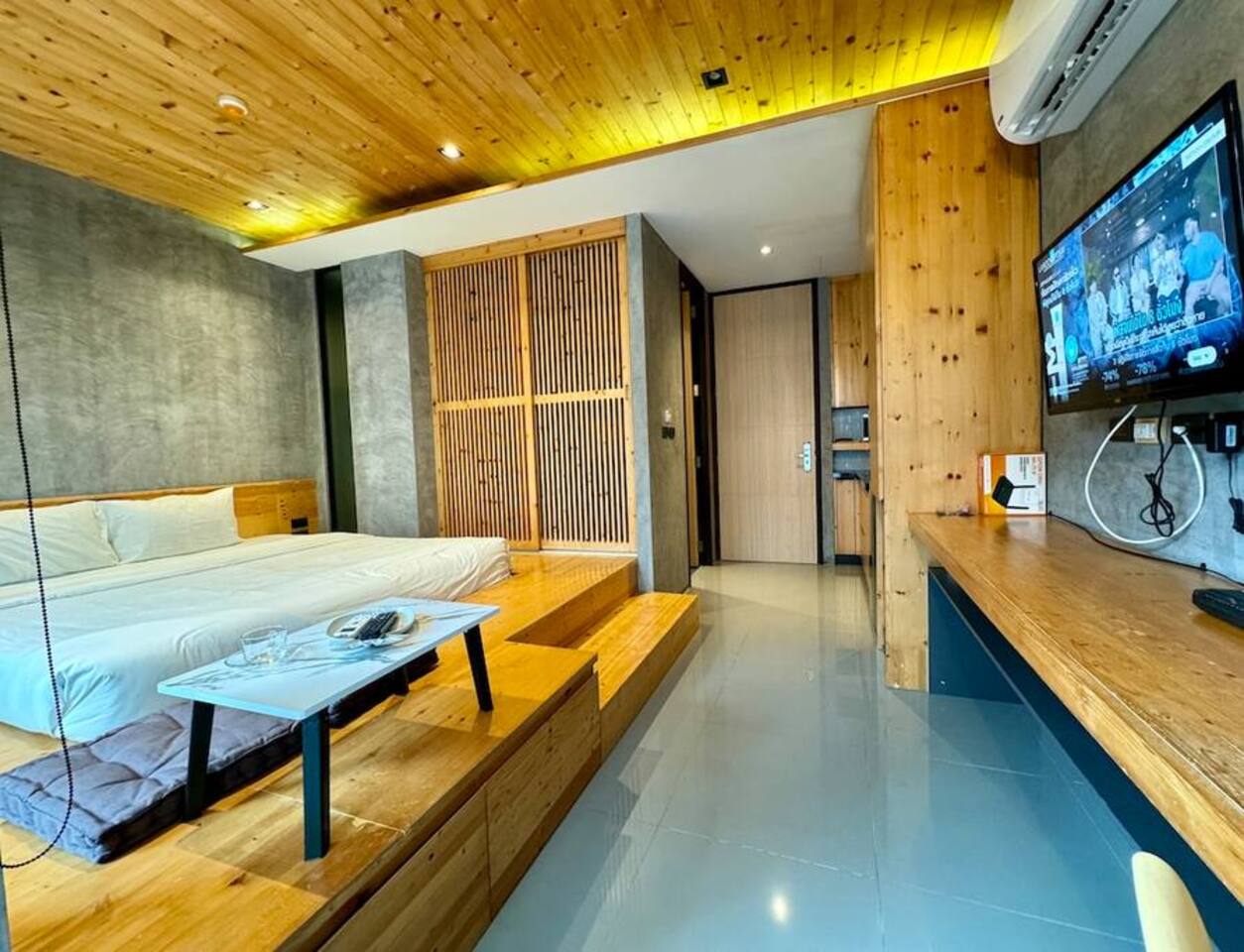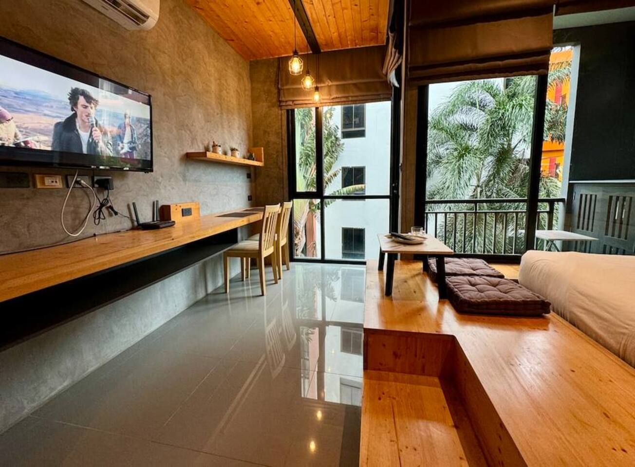 Stylish Studio is located on the 3rd floor of the ReLife Windy, within walking distance of the scenic lake and Nai Harn Beach. In Thai, “Taya” is associated with softness, harmony, and stability. The interior, designed with natural materials, and the picturesque view of palm trees and mountains fully reflect this meaning. The studio is bright and functional, suitable for 1–2 guests. For your comfort, it features a Smart TV, a washing machine, dedicated internet and blackout curtains.