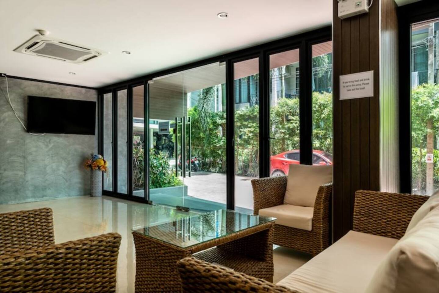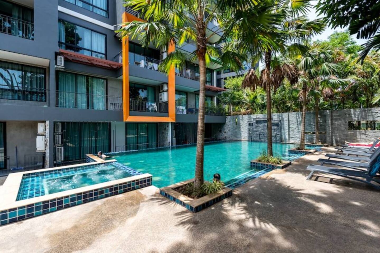 Guests have full access to all facilities of the ReLife Windy complex. There are rooftop and ground-floor pools with sun loungers, a gym, a cosy lobby with soft seating, and on-site parking. Within walking distance, you’ll find various cafés, restaurants, shops, and massage salons. The walk to Nai Harn Beach takes you past a children’s playground, an outdoor fitness area, and the scenic lake with a shaded park opposite a Buddhist temple.
