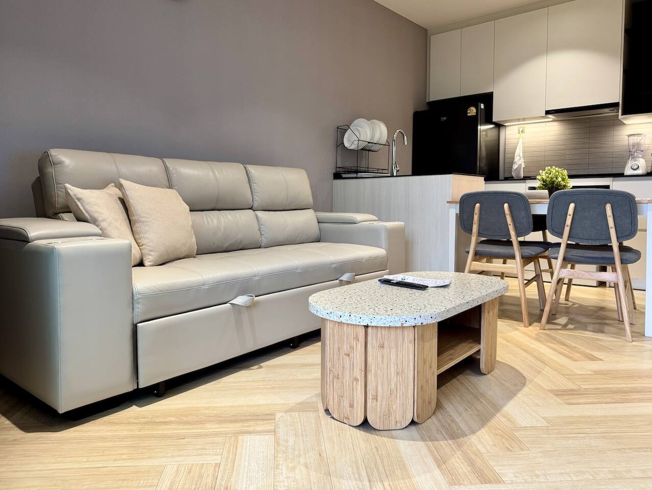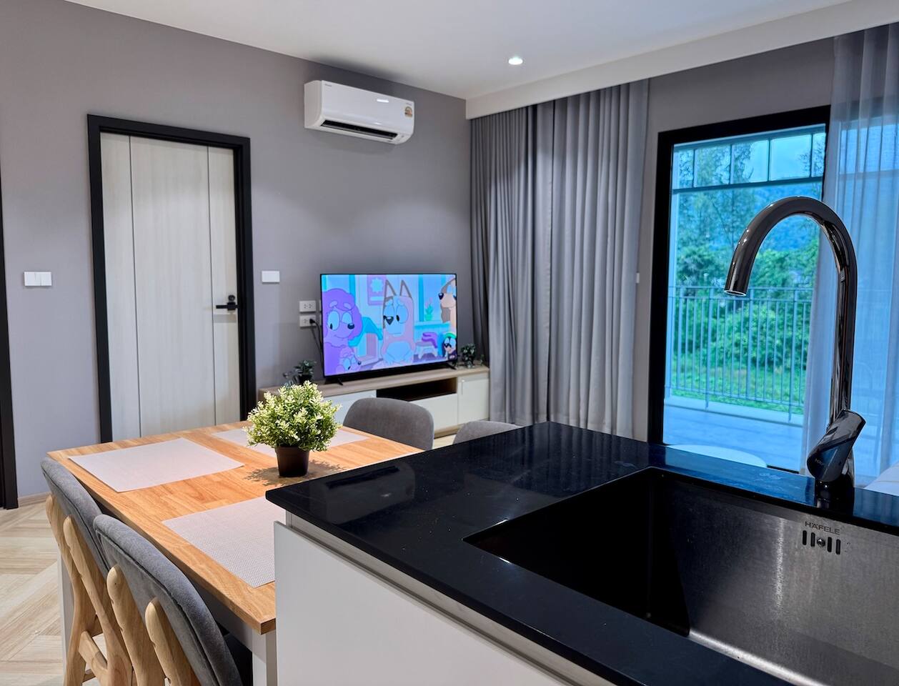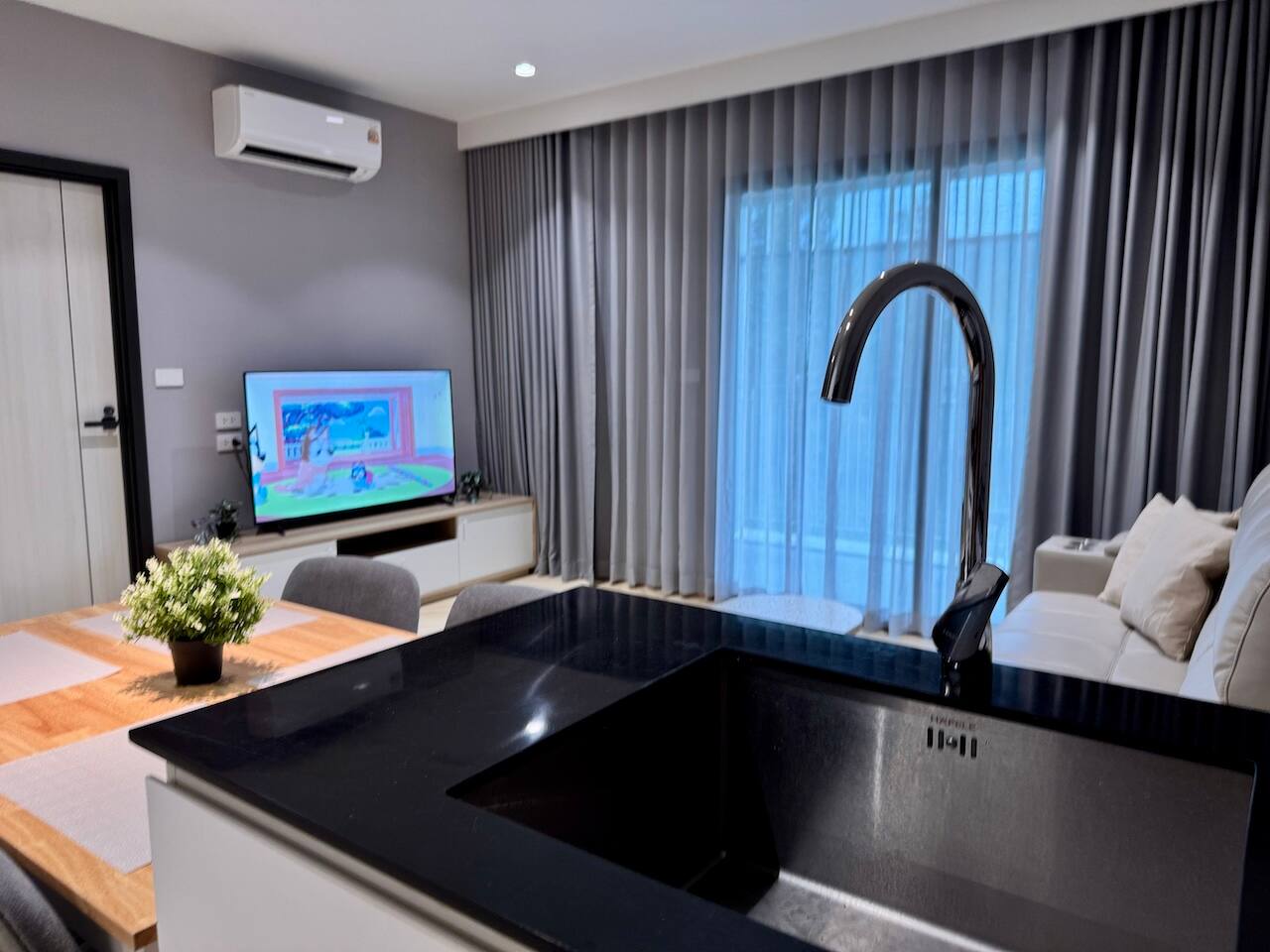 Nava это новые современные апартаменты с видом на горы, расположенные на четвёртом этаже комплекса The Title Legendary Bangtao, всего в 700 метрах от пляжа. В тайском языке Nava это «лодка», что символизирует путь и движение вперёд в гармонии с природой. Атмосфера квартиры передаёт этот смысл: светлое пространство и современный дизайн создают ощущение лёгкости и предвкушение ярких впечатлений от отдыха на Пхукете.